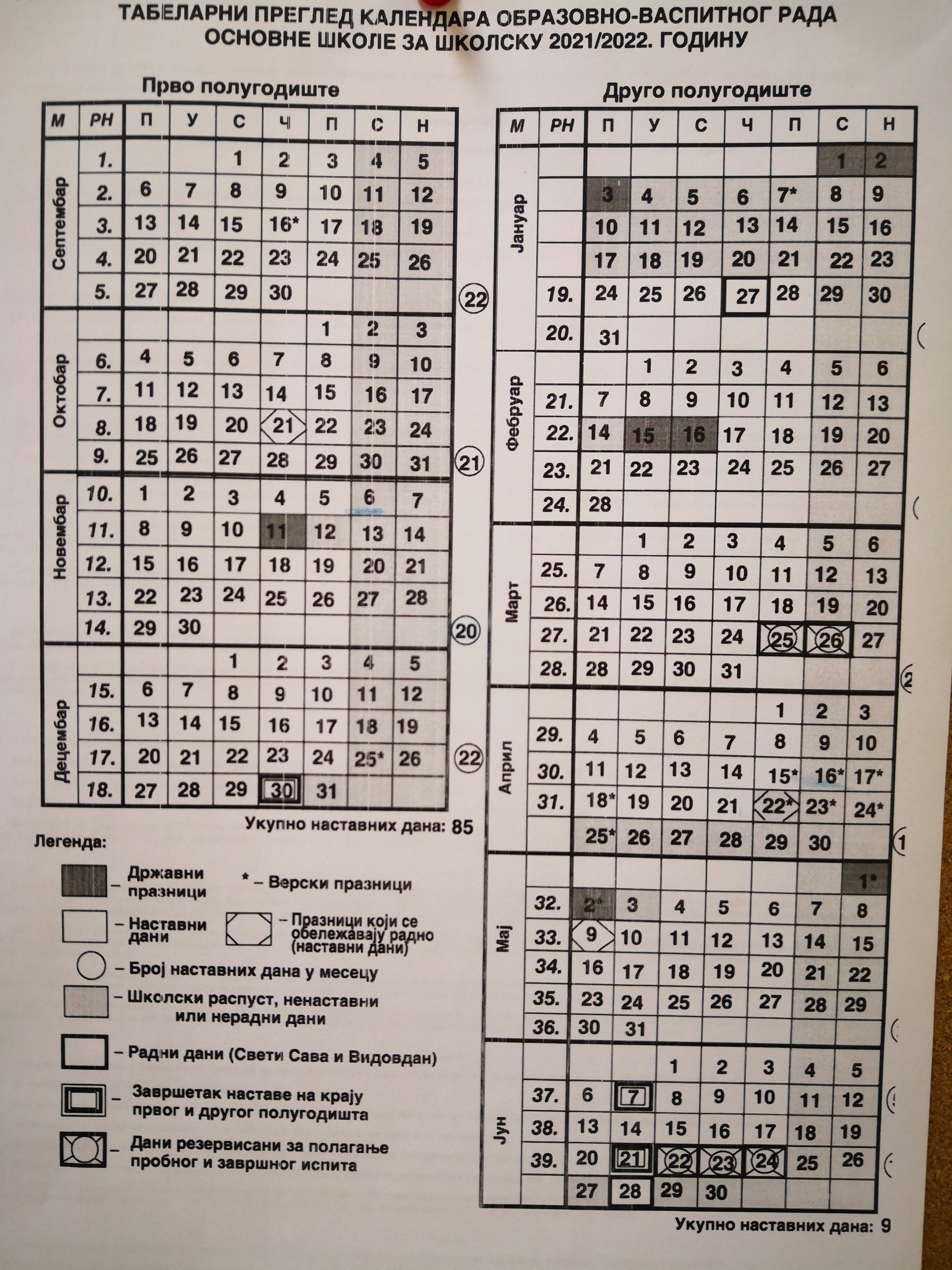 НОВИ КАЛЕНДАР ВАСПИТНО - ОБРАЗОВНОГ РАДА ЗА ШКОЛСКУ 2021/2022. ГОДИНУ